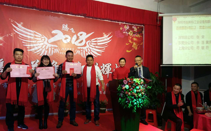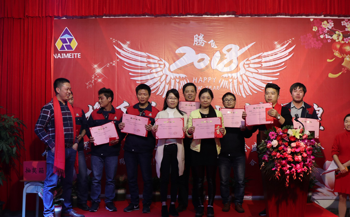 席間耐美特集團(tuán)公司高層領(lǐng)導(dǎo)人為2017年度優(yōu)秀員工頒發(fā)了獎(jiǎng)金及榮譽(yù)證書(shū),以鼓勵(lì)大家在2018新的一年里再接再厲取得更好的業(yè)績(jī)。