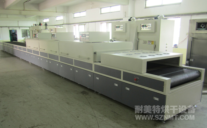 烘干爐部分外形尺寸:總長18米,外寬1.34米,網(wǎng)帶寬1.1米,總高1.22米,進(jìn)料部分長10米,烘干部分長6米,緩沖區(qū)長0.3米;